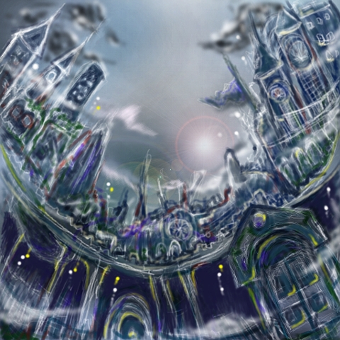 なんとなくこの前の宙に浮いた怪しいお城を描いて見たり。(この画像一枚アップするのに一体どれだけ時間をかけているのやら…ハッ!(`ロ´;)) 建物を描くのにフリーハンドはまずかった。歪む歪むっ。しかも、ぶっちゃけ半分寝ながら色塗ってましたアーッヒャヒャヒャーΨ(゚∀゚ ;)Ψ それをまた色の重ねで誤魔化しを施したり。 またちゃんと練習しようっと。