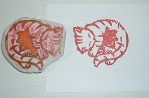 もうちょっと固めの方が彫りやすいかもしれない(;´Д`A ``` 結局付属で付いていた彫刻刀もねりけしもインクも使わなかったという…w