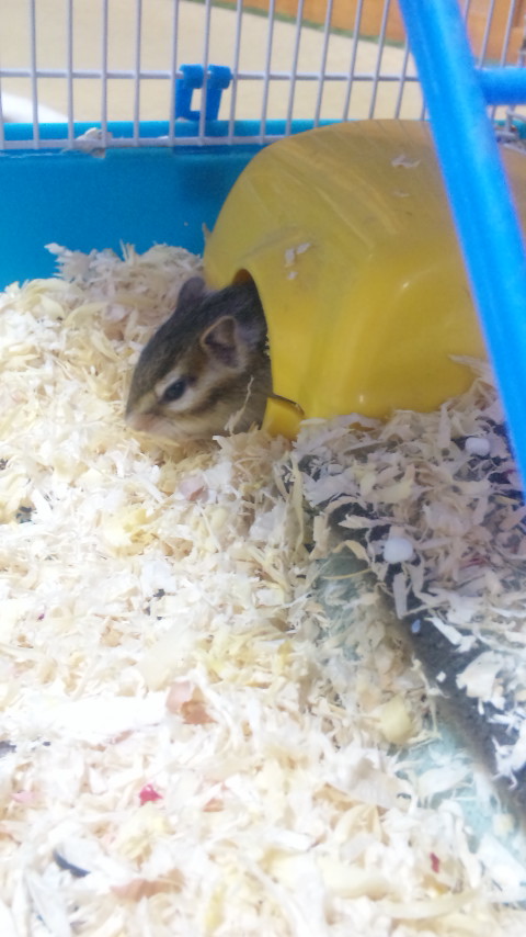 ええ、巣箱が何故かトイレとかしてます(;´Д`A ```そこ巣箱だぞー。寝るところだぞー。…てか今までちゃんと寝てたじゃないの。なぜ今更そこトイレにしたの?!でもね、ちゃんと中が汚れないようにチップを自分で巣箱に詰め込んで…綺麗好きvってちがーう!!